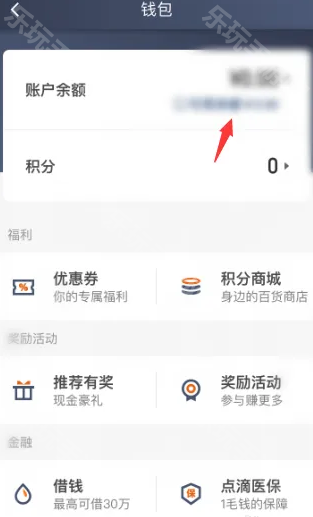 3、这时会显示我们的账户余额,点击余额数字