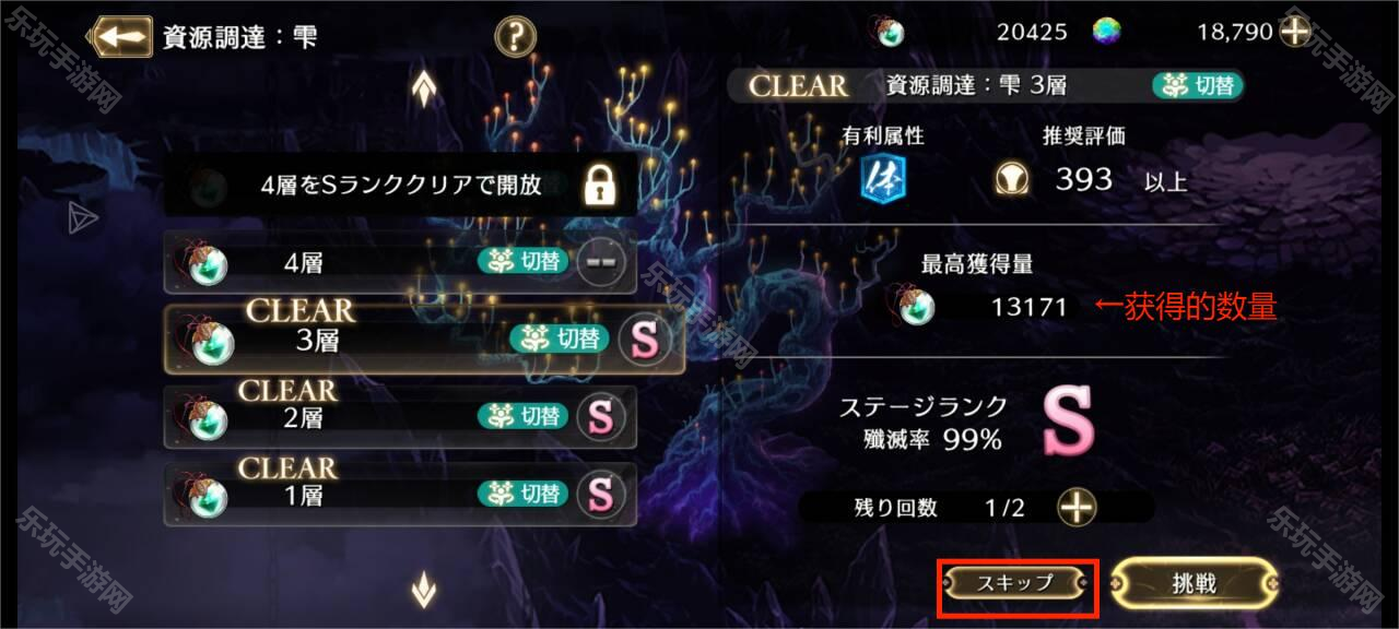 3、在右侧的副本介绍中可以发现有一个Skip选项,点击后即可进行扫荡
