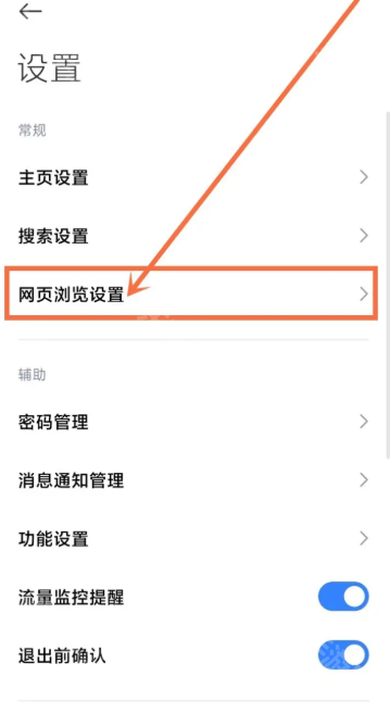 1、首先我们打开小米浏览器的设置页面