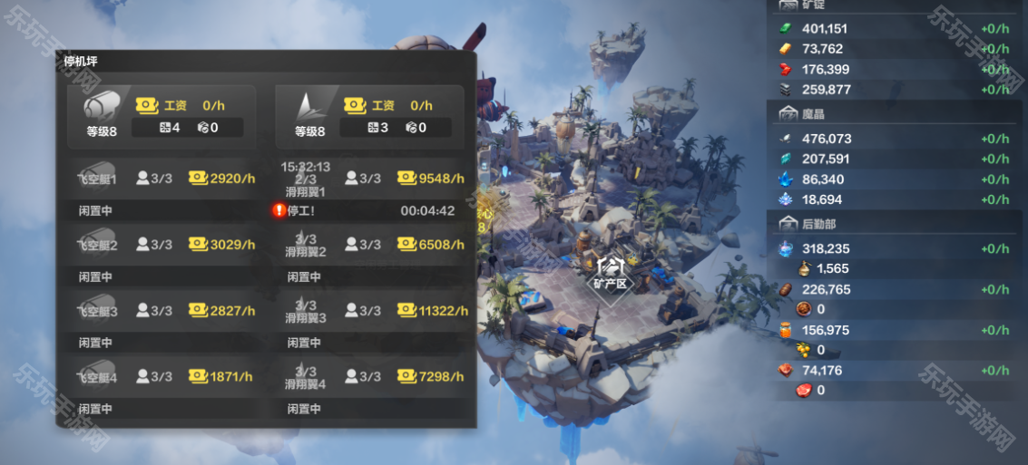 总工资:当前维持劳工工作每小时消耗的金币,闲置中的飞空庭、滑翔翼不消耗工资。