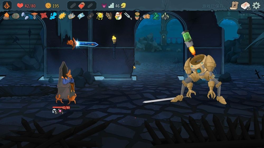 这次游戏的美术也进一步升级,不只是各种攻击的动态特效变得更美观,角色和怪物也有一些很可爱的小细节。例如储君的王座下那两隻负责抬著椅子的僕从时不时还会双脚颤抖、怪物被击倒后的反应也变得更丰富,虽然仍有部分图片看起来仍未完成,但仍能感受到非常明确的进步。