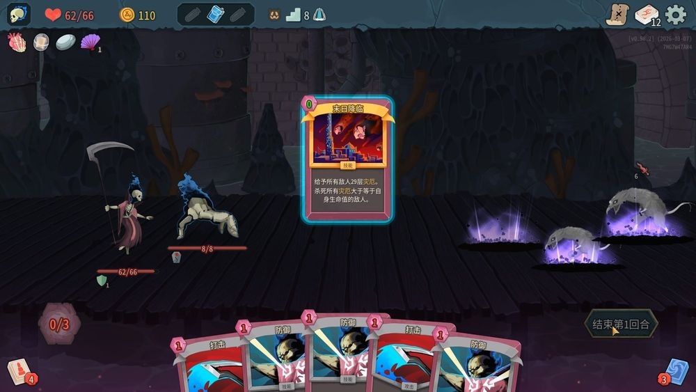 「灾厄」效果会在敌人血量低于层数时直接秒杀,但要注意会等敌人行动完才发动