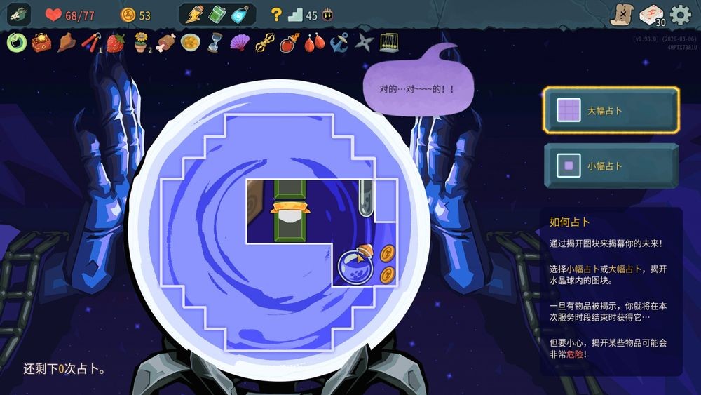 有趣的新事件占卜,必须花费些许金钱购买占卜方块覆盖表面,用来获取被揭露的奖励