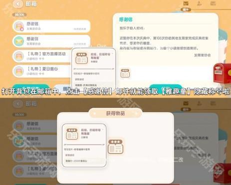 4、在邮箱中打开感谢信,即可领取【稚趣童】隐藏称号并进行佩戴