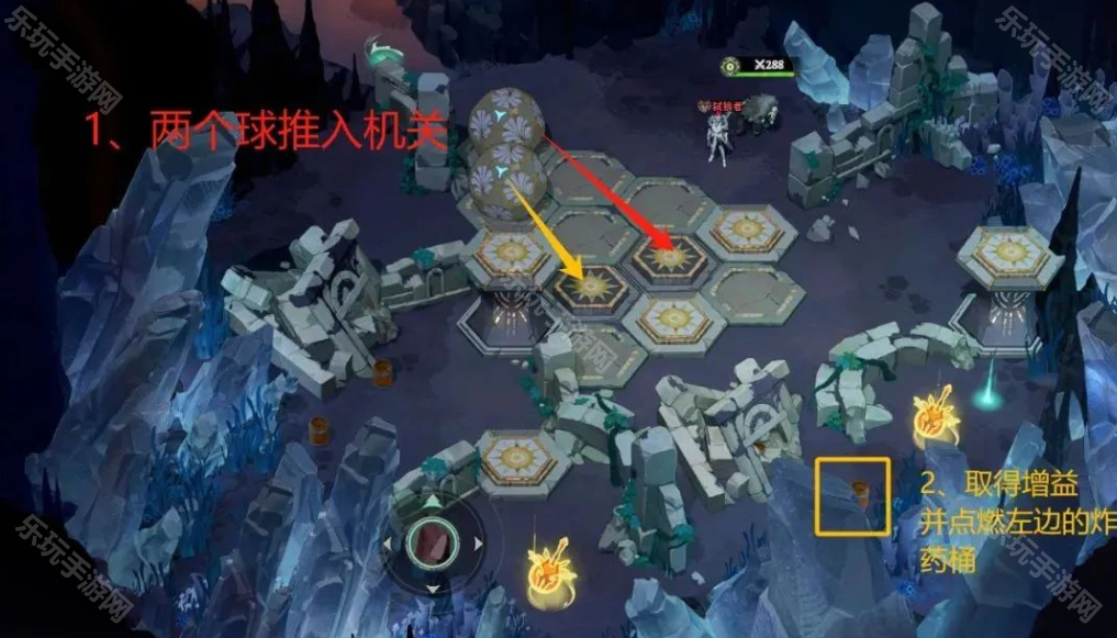 先把两个球推入机关,取得内部的增益和点燃炸药
