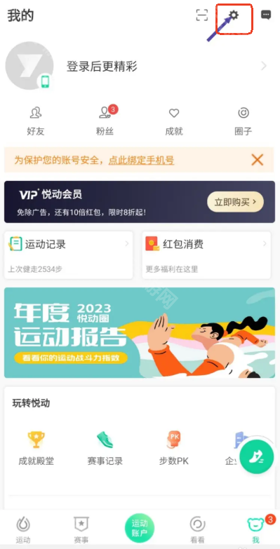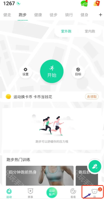 1、打开悦动圈app,切换到我的页面