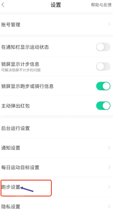 3、然后在底部找到跑步设置