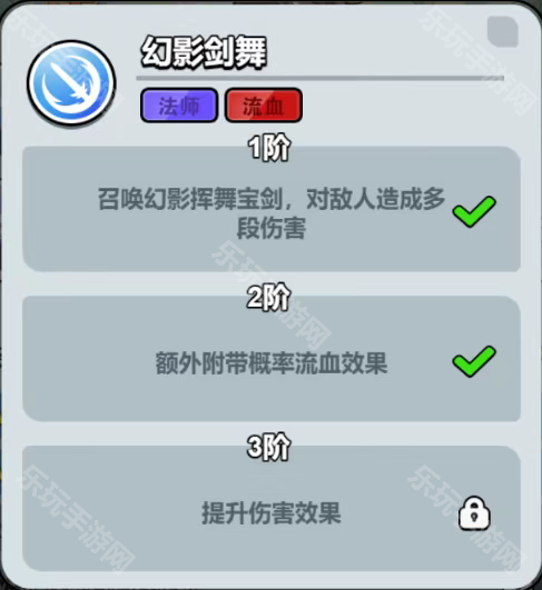 总结:类似幻剑术,阶段2附带流血,阶段3提升伤害,还是不错的。阶段4是假伤害,而且技能范围不是很大。
