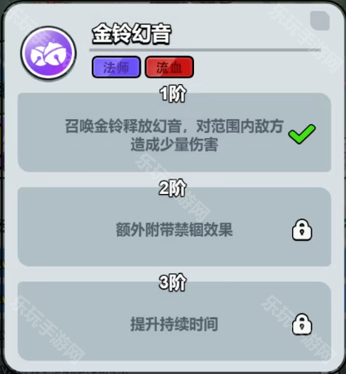 金铃幻音:召唤金铃释放幻音,对范围内敌方造成少量伤害
