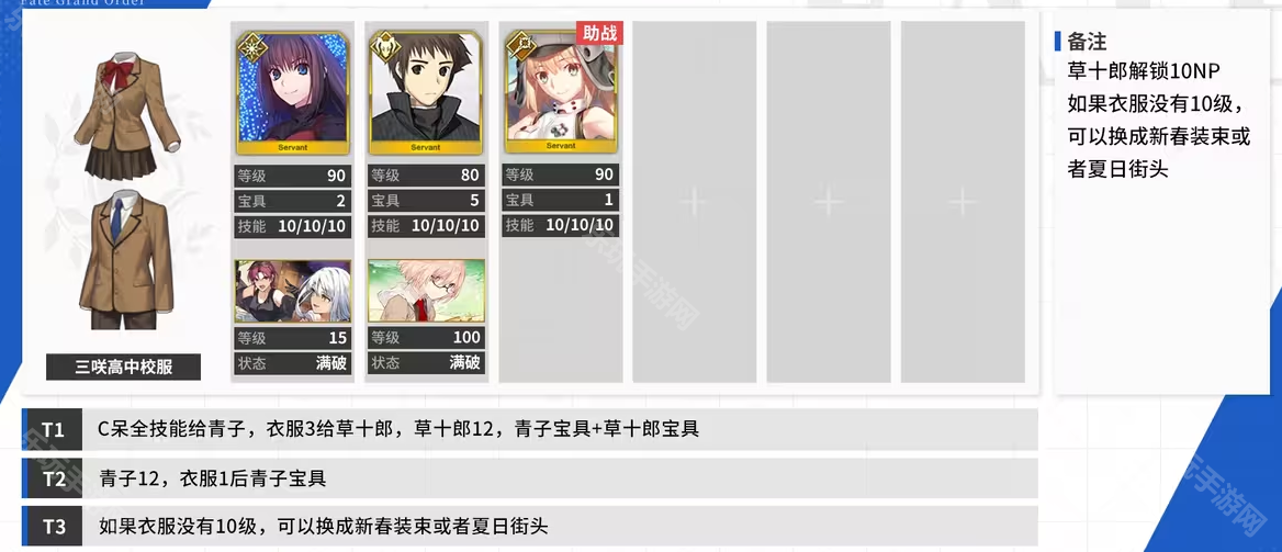 同时还可以用联动三人组来刷取,顺便有伤害提升还能刷刷羁绊,本次联动的草十郎还是很有实力的
