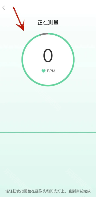 3、然后跟随底部的指引:将食指轻轻覆盖在摄像头和闪光灯上,之后等待测试完成后就能看到自己的心率了