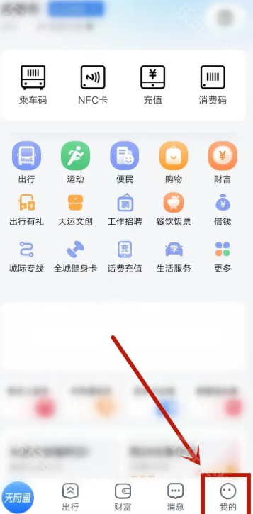 1、首先打开天府通app,切换到我的页面