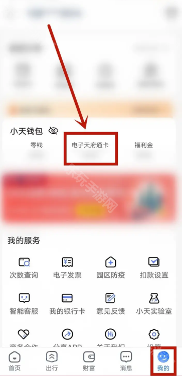 2、在页面中间我们可以找到电子天府通卡这个选项