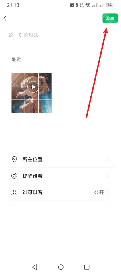 7、最后选择发表即可在自己的朋友圈中发布视频动态了。