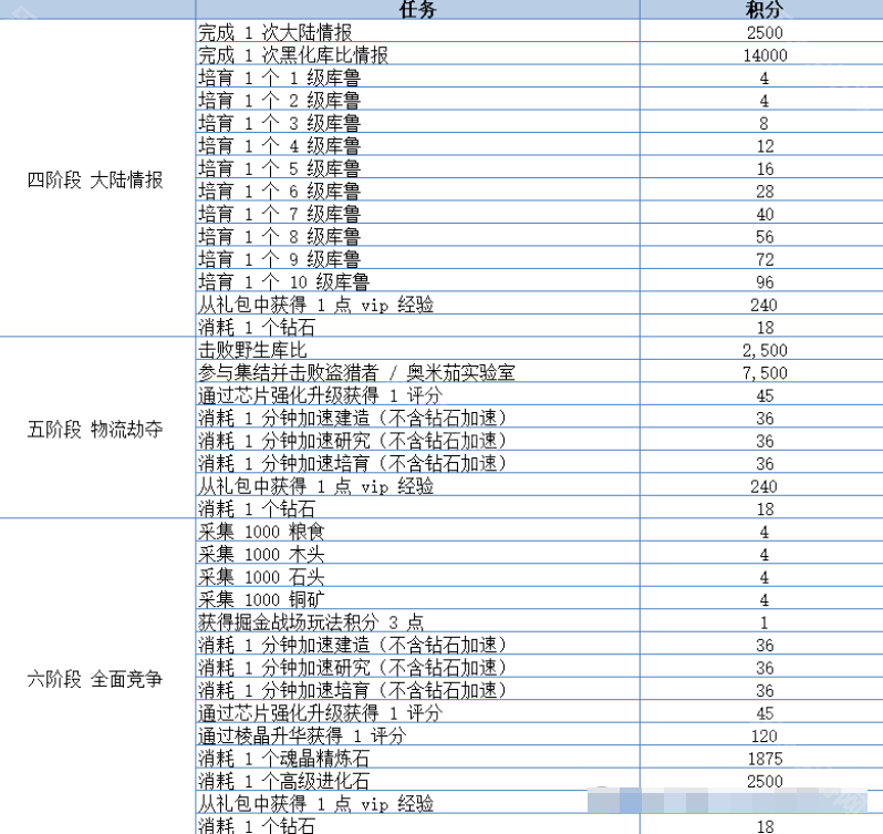 曙光重临公会大作战各阶段任务能拿多少积分?公会大作战是游戏新出的玩法,和公会总动员一样,我们每天都需要完成任务来获取积分。活动一共会持续6个阶段,每个阶段我们需要完成的任务和可以获得的积分不同。乐玩小编在这里整理了6各阶段的任务及积分表,有需要的小伙伴一定不要错过了。