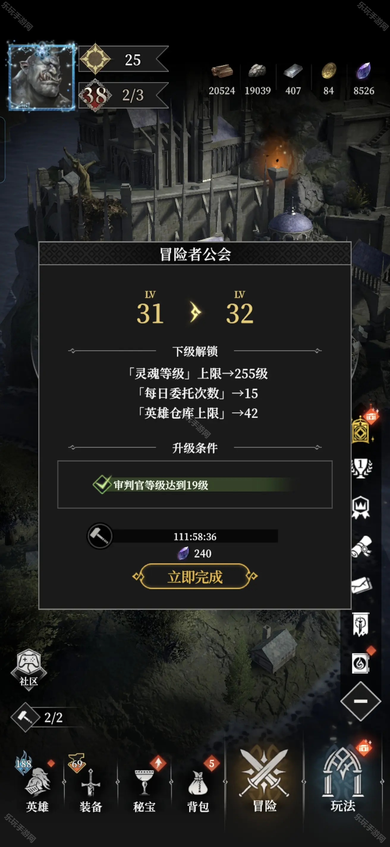 地下城堡4冒险者公会值得升到多少级?在游戏中我们达到18级时就会解锁冒险者公会,我们需要通过完成委托任务来提升冒险者公会的等级,达到一定等级时我们就能获得相应的奖励。由于前期升级奖励很鸡肋,因此许多玩家都不愿提去升级,但其实到后期我们可以拿到非常不错的奖励。那么接下来就由乐玩小编给大家带来《地下城堡4骑士与破碎编年史》冒险者公会升级建议吧。
