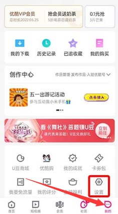 1、打开优酷,点击右下角“我的”,然后点击“设置”。