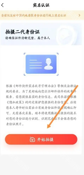 3、点击后我们需要拍摄自己的二代身份证,完成拍摄并提交审核即可