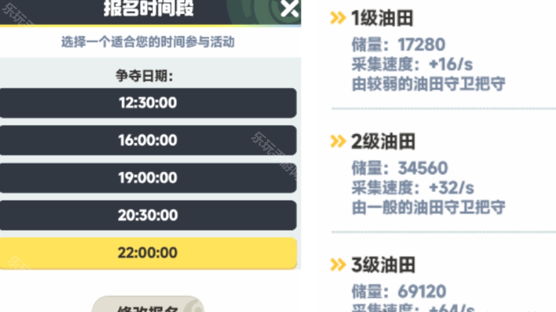 1、石油争夺战可以自己选时间,当天报名当天参加。开启时有3分钟可以观察地图选位,平民飞偏远点的2级油田附近,避开大佬。