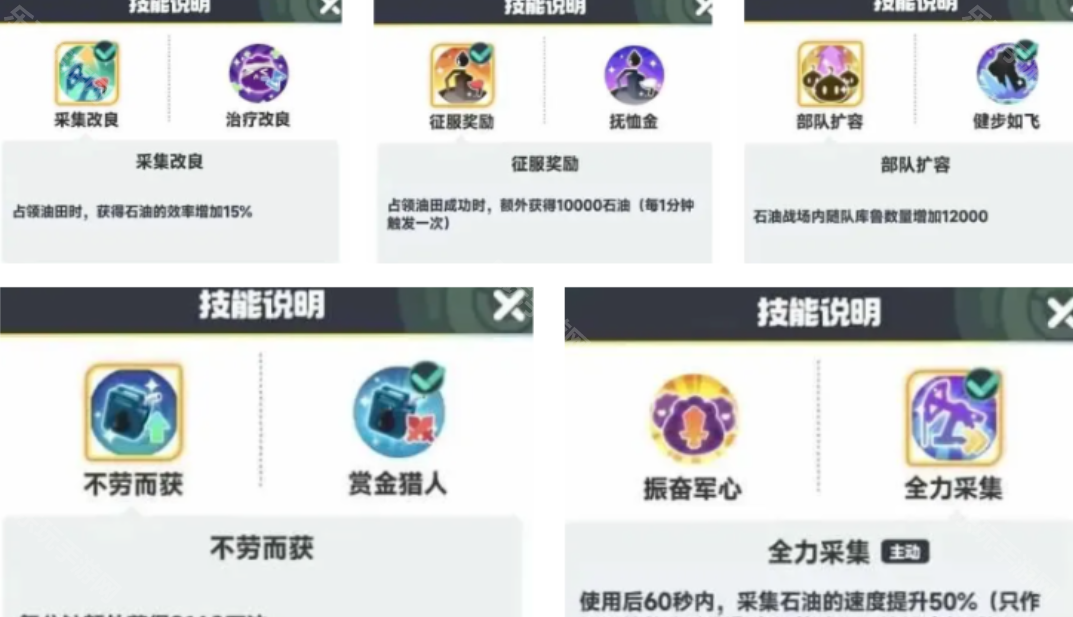 很难占,基本都是高战去抢,一旦失败就要复活5分钟。所以不想去抢大油田,就把五级技能的全力采集换振奋军心即可。
