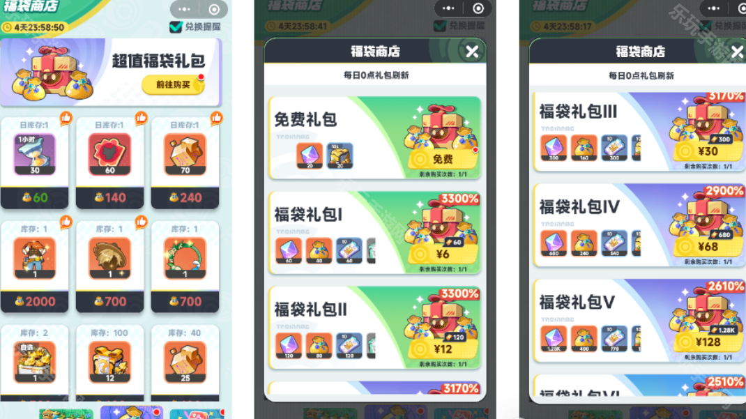 1个是福袋兑换商店,另1个是福袋礼包的商店
