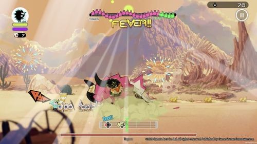在游戏中,玩家除了可施展不同的攻击、防御等节奏指令外,《RATATAN》还加入了让角色可以自由移动来增加动作性,以及加入拥有独特技能的角色,进一步犟化了游戏想表达的主旨——音乐性,只要玩家持续准确地输入节奏指令,玩家更可进入紧张刺激的 FEVER 模式。在 FEVER 模式下,除 BGM 会产生互动变化外,角色也会以各种动作让你的进攻变得多姿多彩。