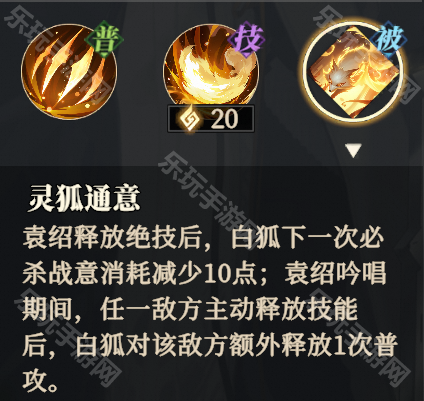 分析:袁绍攻击后触发,并不局限于绝技,只要目标血量低于50%普攻也能触发白狐追击,只是绝技伤害更高,选择目标更灵活,更容易将敌人打到50%血线以下。