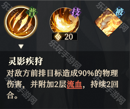 瞬发输出型技能,30战意消耗,无冷却时间。对任意目标(可切后)进行3段攻击,目标带有的每层【中毒】【流血】都能提升绝技10%暴击率。