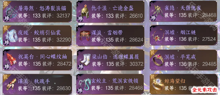 下半身:135雀隐手镯+玄蛟主手镯+橙戒,131忽视项链装等太低不带,用淬锋镝,打造·扬涛御雷,神器点满元素忽视来补充忽视,橙戒熔炼词条选全元素攻击。
