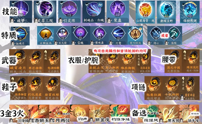 主身法副气海,引灵阵自带200命中,面板命中堆到7100即可,入战会心10400+。