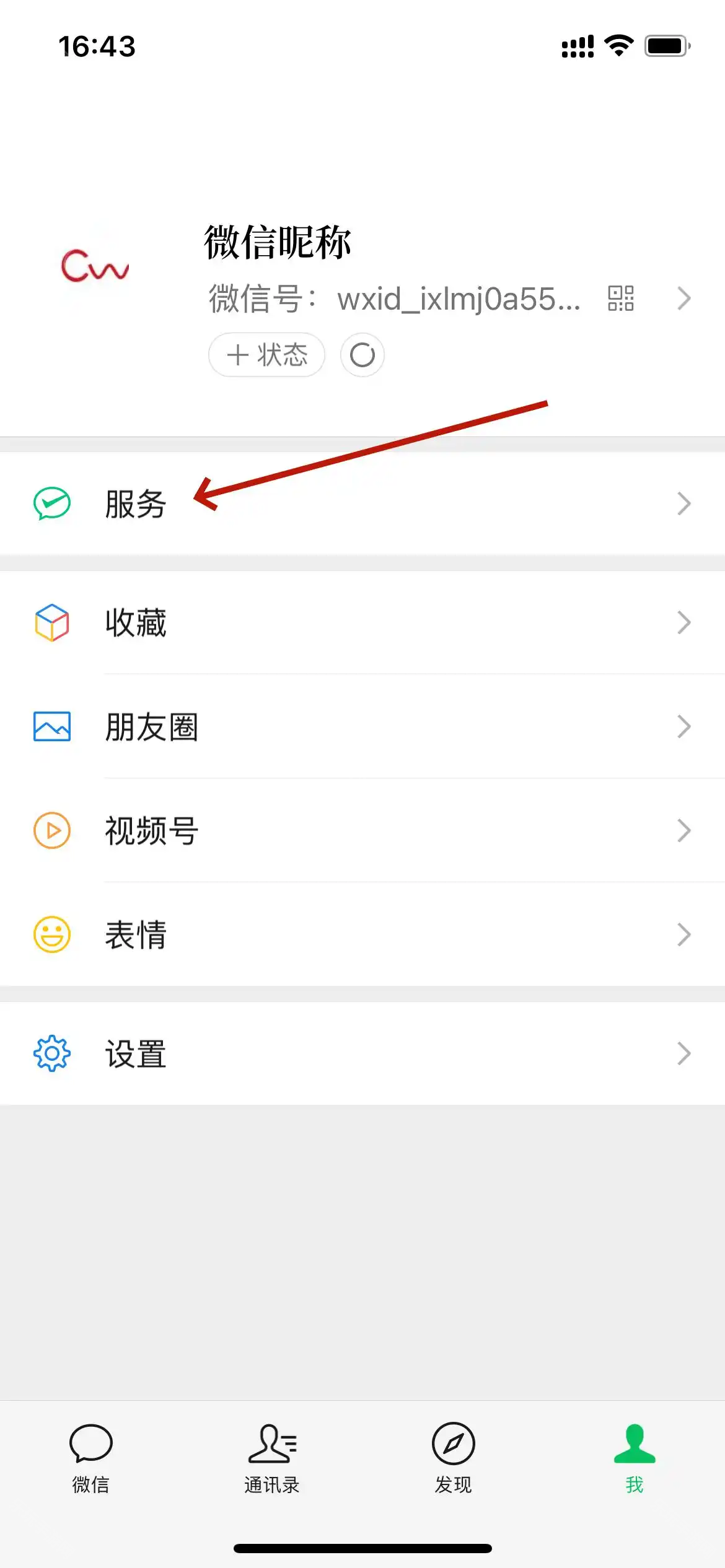 1、首先我们打开微信APP,切换到我的页面,点击服务