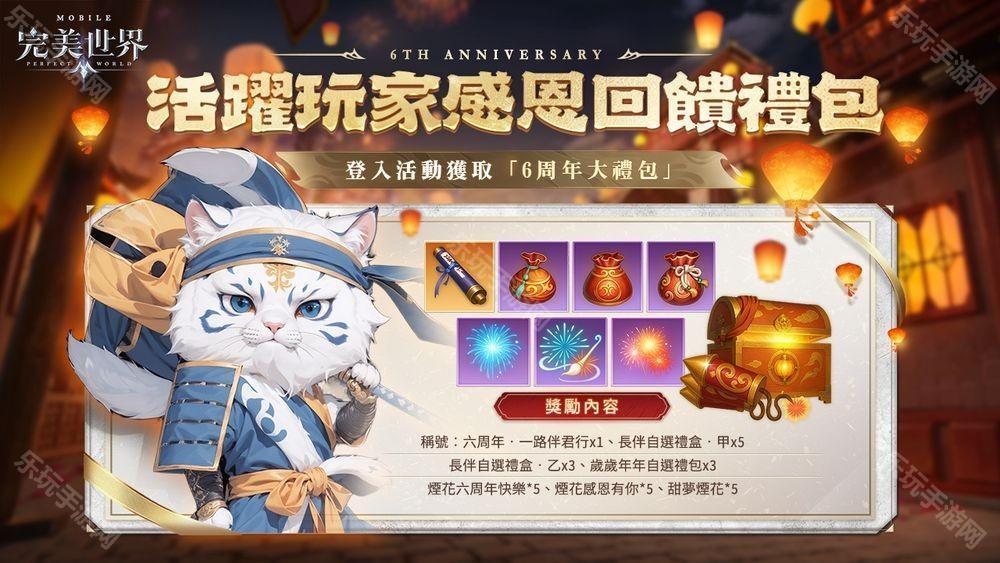立即登入《完美世界 M》即可获得「六周年感恩回馈礼包」,其中包含限定称号「六周年・一路伴君行」、岁岁年年自选礼包、甜梦烟花等多样虚宝奖励。感谢玩家们对游戏的支持与喜爱。